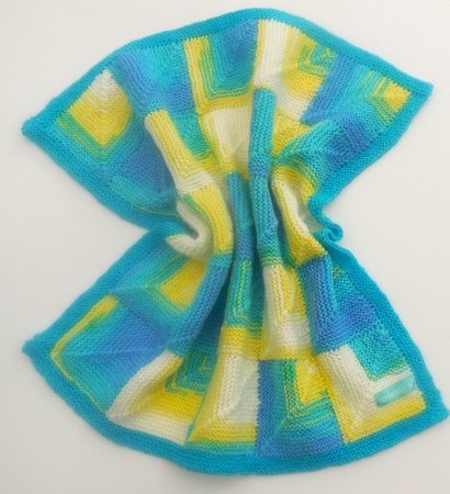 Diese süße Babydecke wird überwiegend in einem Stück und mit rechten Maschen gestrickt. Das lästige Zusammennähen der einzelnen Quadrate entfällt!
