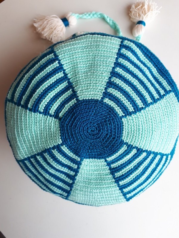 Da Wayúu Mochila Taschen mit einer speziellen Technik gehäkelt werden, solltest du dir den Grundkurs für Tapestry häkeln, inklusive Video, in meinem Shop kaufen. Darin wird erklärt wie der Anfang gemacht wird, der Übergang von Boden zum Körper, welche Häkelnadel verwendet werden sollte und warum. Mit ganz vielen Tipps zeige ich dir, unter anderem das die Fäden sich nicht miteinander verdrehen während dem häkeln.