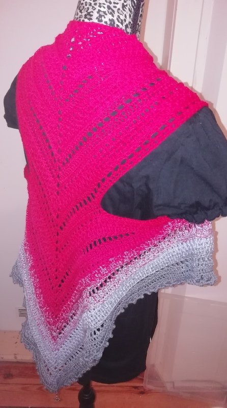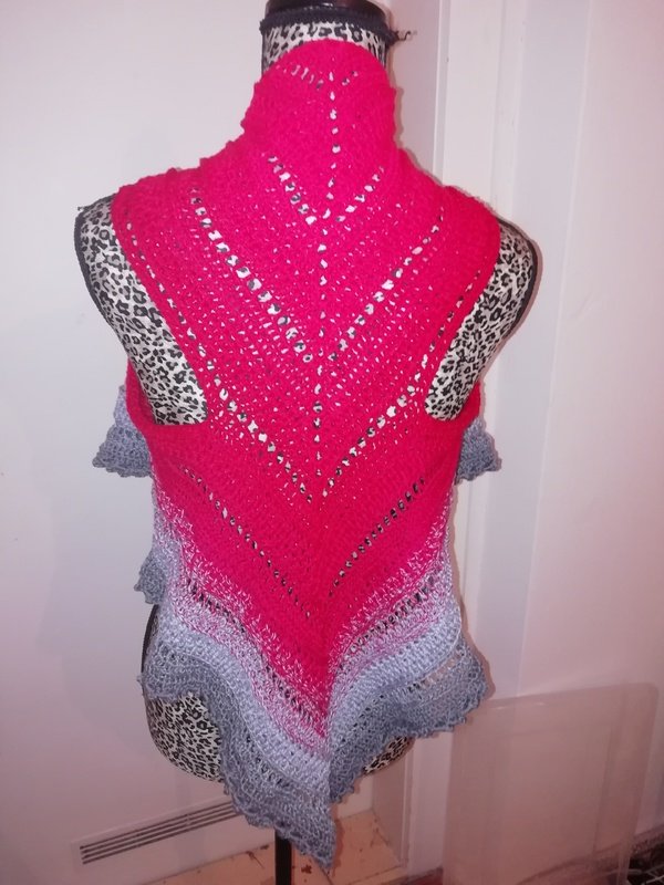 Tuchweste Cesa. Ein klassisches Dreieckstuch das aufgrund der Armlöcher als Weste getragen wird. Diese Tuchweste kann so gross gehäkelt werden wie es gefällt. Die Mustersätze lassen sich problemlos bis zur gewünschten Größe wiederholen.