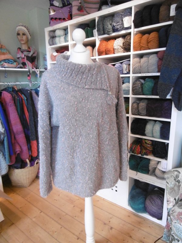 Eine einfache Strickanleitung für einen kastenförmigen Damenpullover mit einer extravaganten Ausschittlösung.