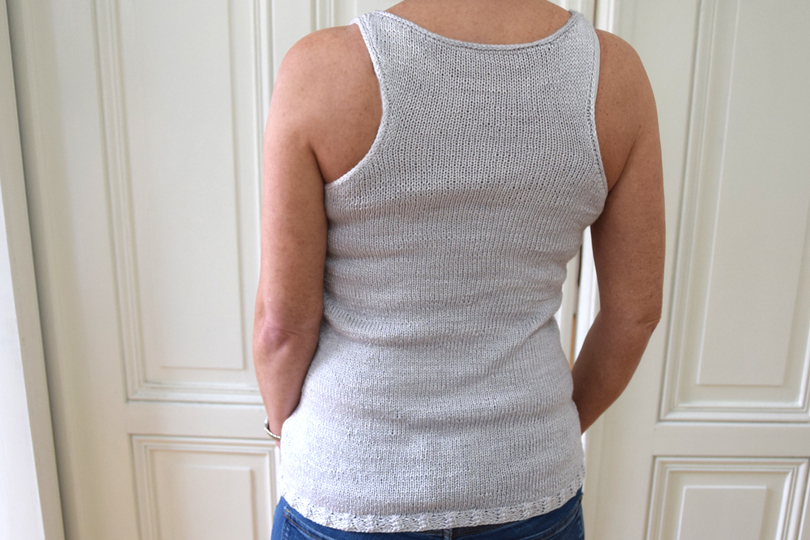 “Mirja” ist ein sehr einfach zu strickendes Tanktop mit einem interessanten Zopfmusterbündchen und schönen I-Cord-Rändern an Hals- und Armausschnitten. Das Top wird von unten nach oben zunächst an einem Stück in Runden gestrickt, in Höhe der Armausschnitte wird die Arbeit dann in Vorder- und Rückenteil geteilt und separat weiter in Reihen gestrickt. Ein sehr schönes Sommerprojekt auch für Strickanfänger!