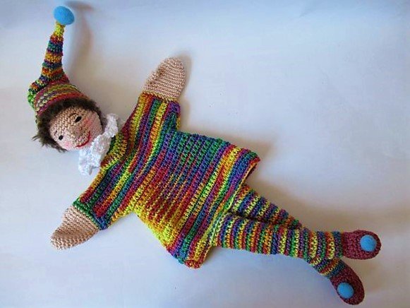 Die 15-seitige Anleitung enthält viele Bilder. Sie erklärt zusätzliche Maschen, enthält ein Schnittschema für den Körper und eine Häkelschrift für den Kragen (der aber auch Runde für Runde ausgeschrieben erklärt wird).