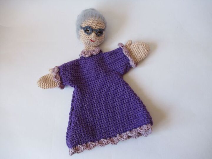 Die Handpuppe ist eher für kleinere Hände gedacht, damit die Kinder sie gut bespielen können. Wenn du sie breiter haben möchtest, häkle einfach bei Vorder- und Rückteil ein paar Maschen mehr in der Breite. Die Zu- bzw. Abnahmen und die Anzahl der Reihen verändern sich dabei nicht.