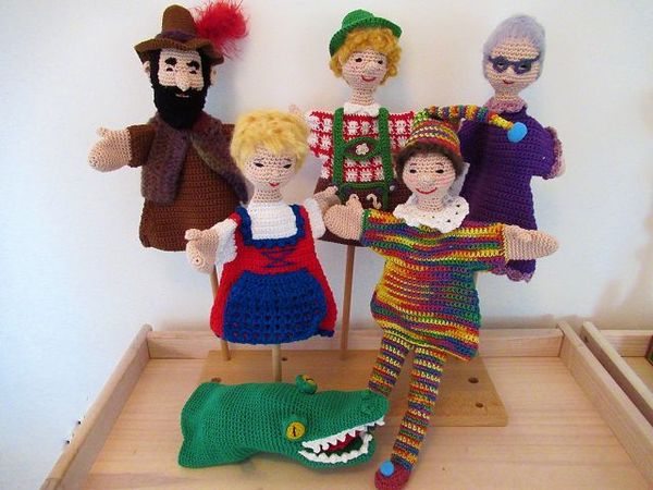 Bei diesem tollen Sparangebot bekommst du 6 Häkelanleitungen für eine Grundausstattung von Handpuppen für das Kasperletheater. Mit Kasperl, Gretel, Seppel, Großmutter, Räuber und Krokodil kannst du schon die meisten Theaterstücke nachspielen.