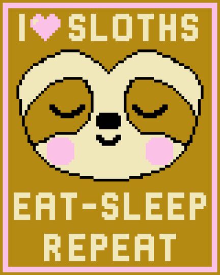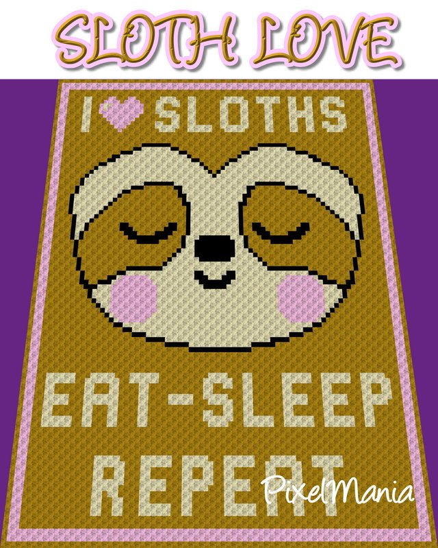 Sloth love ist ein digitales Diagramm, das für verschiedene Häkeltechniken verwendet werden kann, wie Ecke zu Ecke = C2C, Mini C2C, feste Maschen, halbe Stäbchen, Stäbchen, tunesisch häkeln, Bobble Stitch. Alternativ kann dieses Produkt auch für Kreuzstich, Stricken, Hamma-Perlen, Kunststoff-Leinwand und andere Projekte verwenden werden.