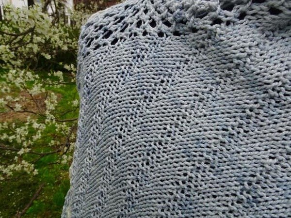 Am Rand wird ein einfaches Lochmuster gestrickt und der Hauptteil wird mit rechten und linken Maschen gestrickt.