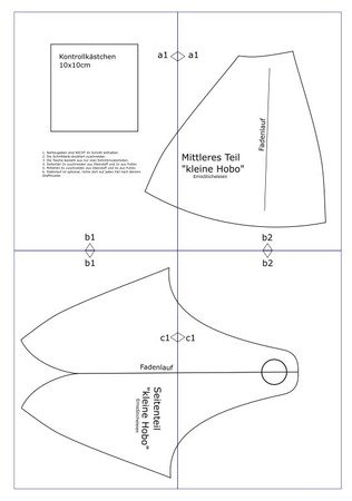 PDF Anleitung und Schnittmuster für ein kleine Handtasche.