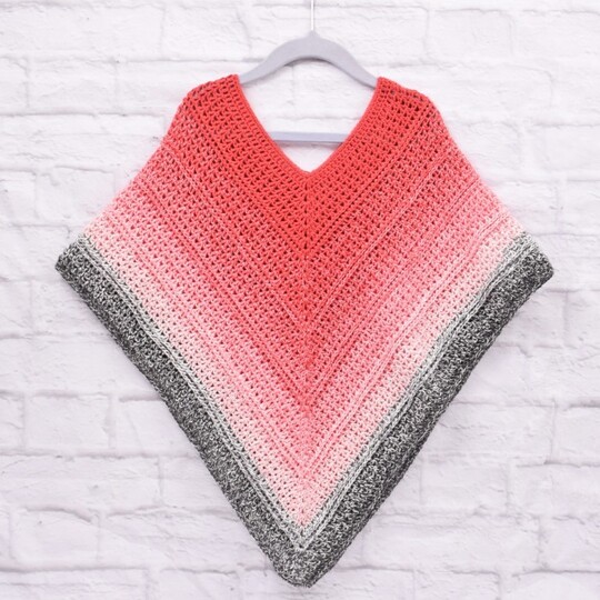 Der Timeless Poncho wird in einem wunderschönen, schlichten und zeitlosen Muster gehäkelt.