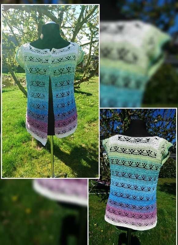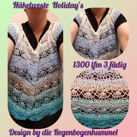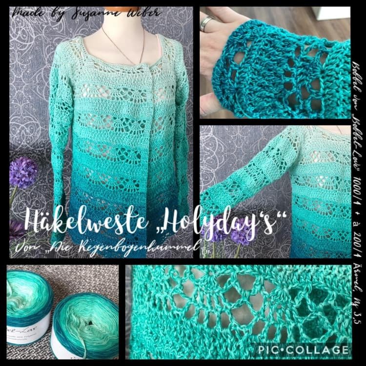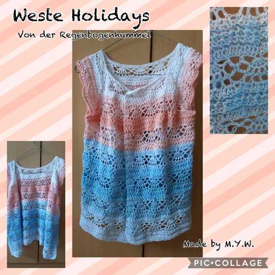 Eine Weste die an Sonne, Strand und Meer erinnert. Kurz und knapp an Feriren und Urlaub. Häkelweste Holiday´s