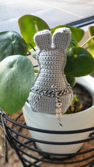 Eine Hasenapplikation, einen Schlüsselanhänger, Taschenbaumler, Blumenstecker, einen Hasen als Deko. Und es gibt noch so viele Möglichkeiten die man mit dieser Anleitung häkeln kann. Lasst eure Fantasie freien Lauf!