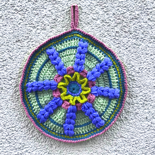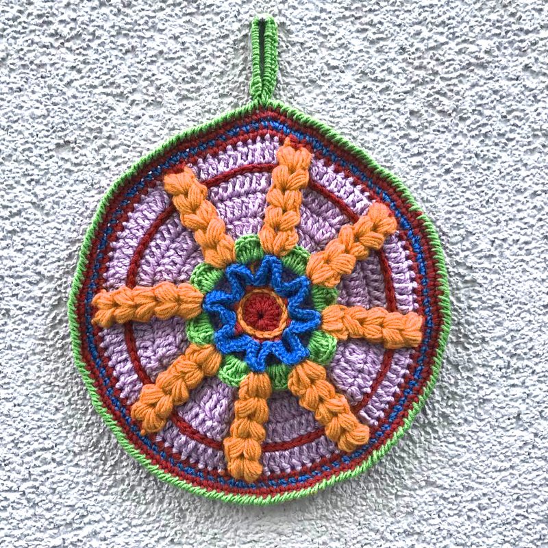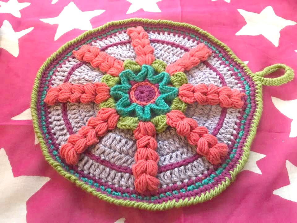 Topflappen "RADAR" wird von mir aus Restwolleknäulen gemacht