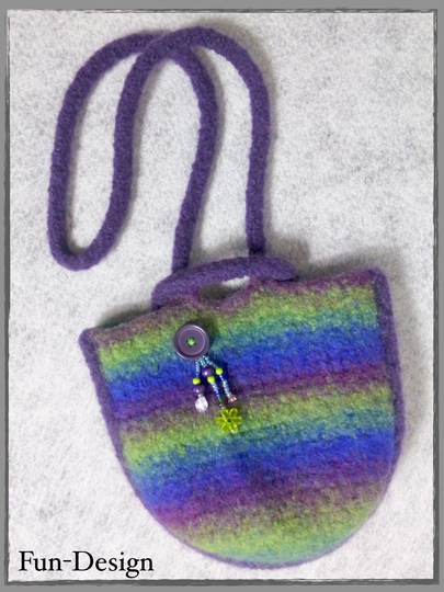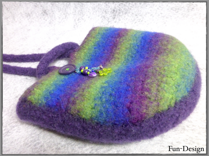 Diese modische Filztasche wird zuerst gehäkelt und dann in der Waschmaschine gefilzt.