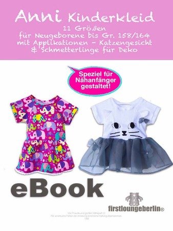 Anni Kinderkleid Nähanleitung/Bildanleitung mit Schnittmuster Gr. 44/50 bis 158/164 mit Katzendeko zum Applizieren