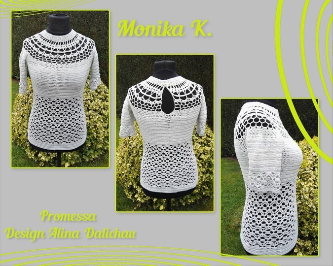 Die Tunika kann aber auch 3 fädig gehäkelt werden. Dann erhöht sich aber der Wollverbrauch.