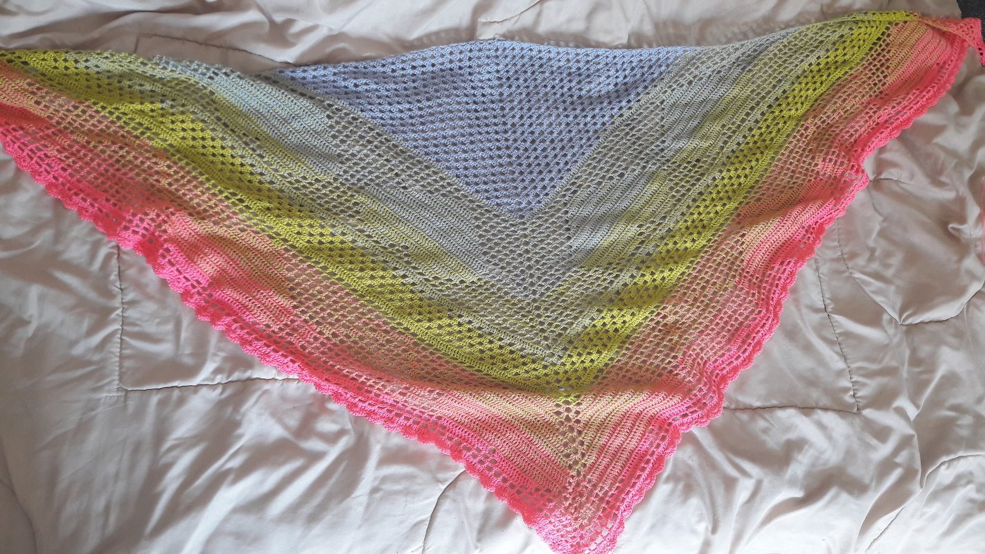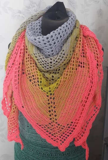 Dreieckstuch kann unterschiedliche Größen erhalten, je nachdem welches Material und mit welcher Nadelstärke Ihr arbeitet