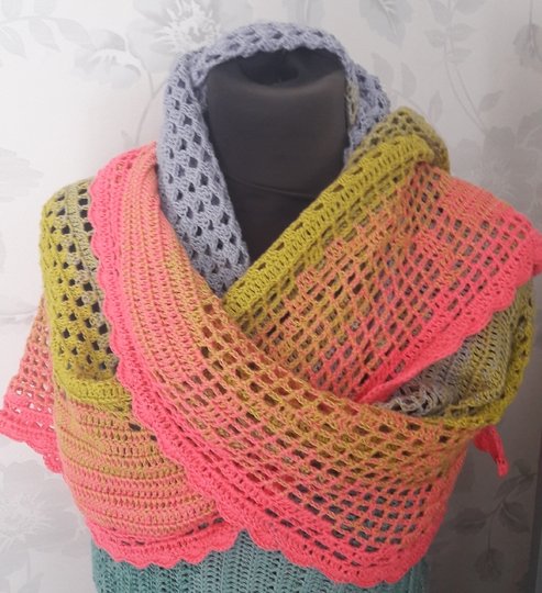Meine Inspiration war etwas zu kreieren um meiner Mama etwas gutes zu tun. Dabei kam dieses Tuch heraus, welches ohne Worte auskommt.