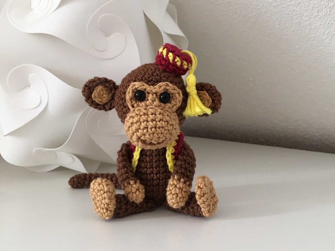 Affe Coco: 2 Knäuel in Hauptfarbe und 1 Knäuel etwas hellere Farbe für die Schnauze, Hände, Füße und die Augenpartie