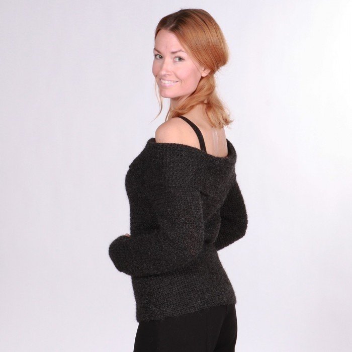 Der Pullover wird von unten nach oben gehäkelt und hat einen großen, tollen Kragen.