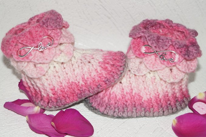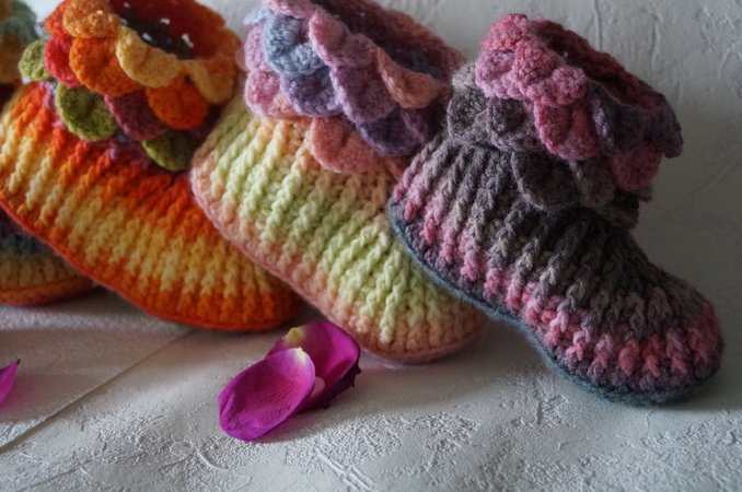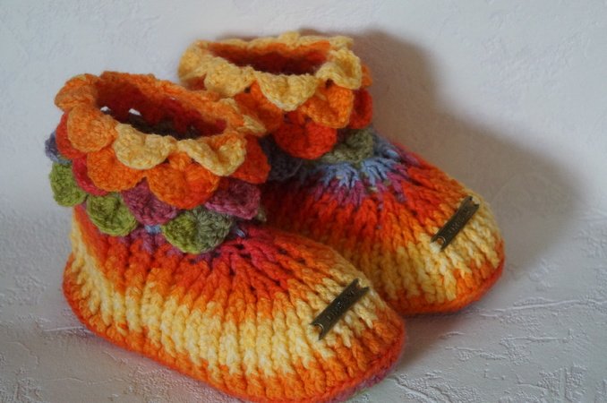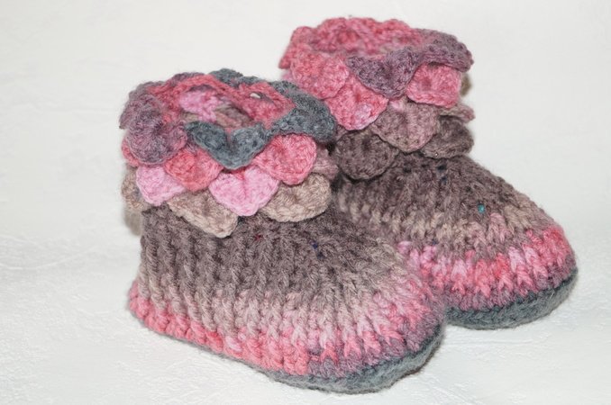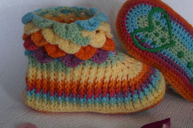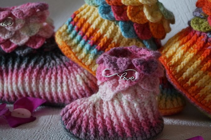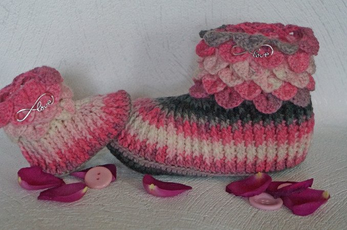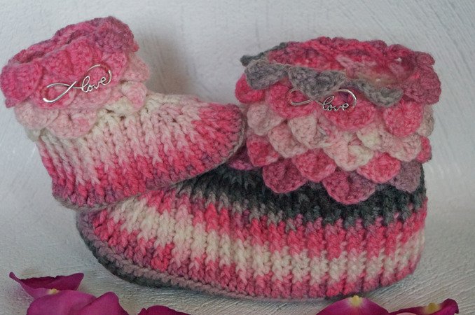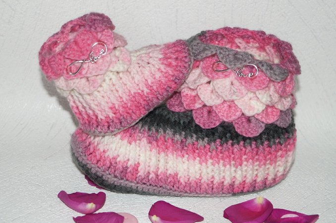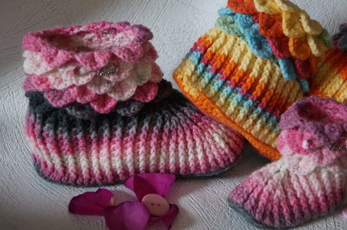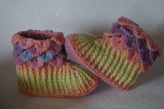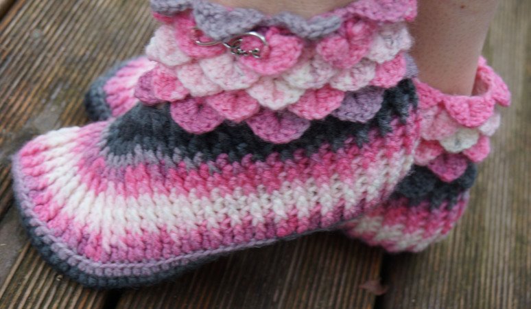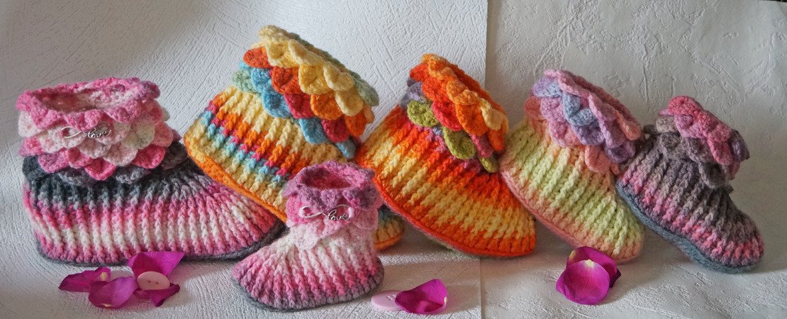 Die niedlichen Schuhe mit dem wunderschönen Schuppenmuster können mit dieser Anleitung in allen Größen vom klitzekleinen Baby bis Schuhgröße 41 gehäkelt werden.