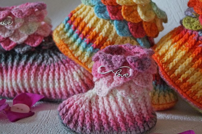 Kuschlig warme Schühchen für jeden - die gleichen Schuhe für Mami und Baby - das sieht klasse aus und hält die Füße schön warm.