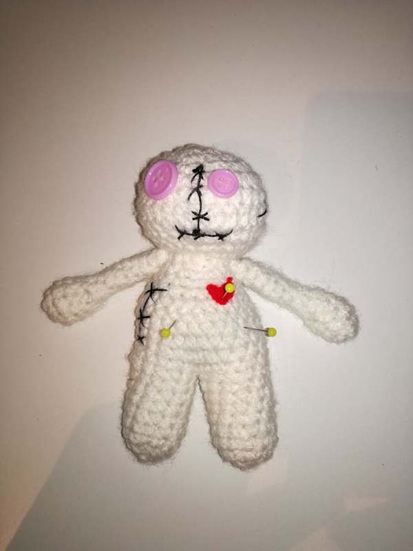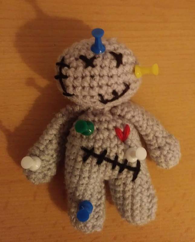 Voodoo Puppe ich fand es lustig eine zu machen man kann sie ja so gestalten wie man sie gerne hätte sie würde probe gehäkelt von ei paar Leuten und ist einfach erklärt kann also jeder machen der ein bisschen häkeln kann