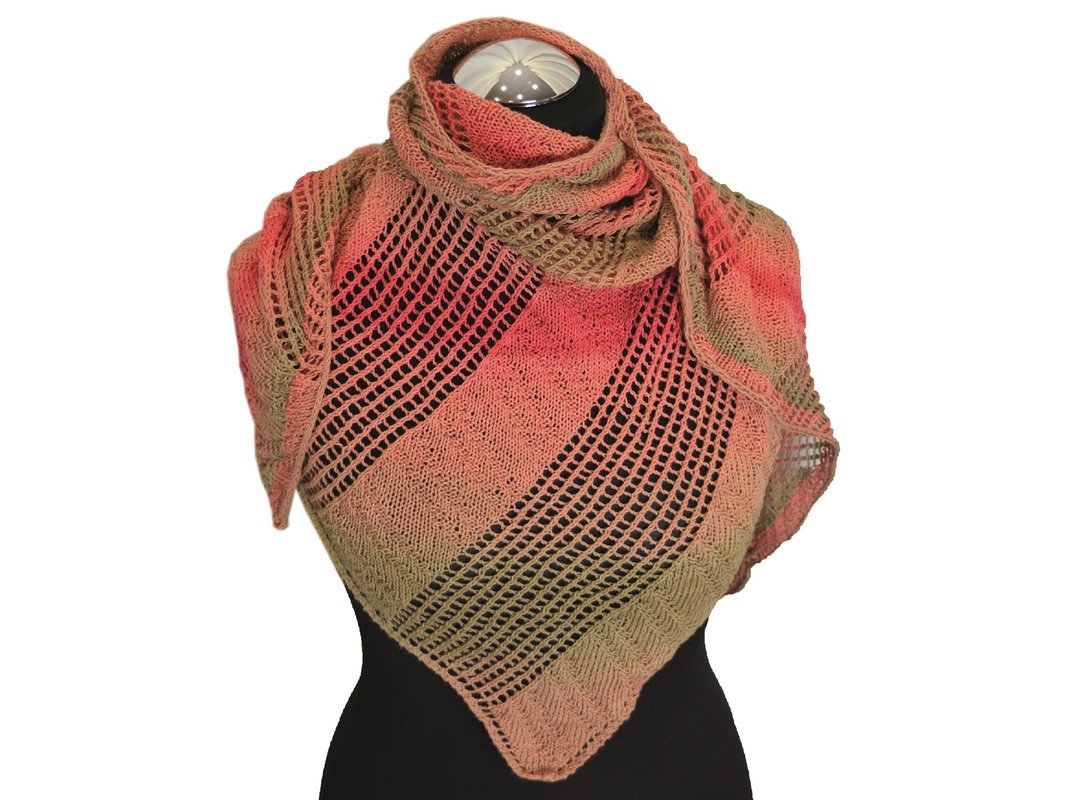 Größe: Tuch = 170x80cm (bei 200g DK), Stola/Schal = 60x250cm (bei 400g DK), jede weitere Größe und Form ist ebenfalls möglich.
