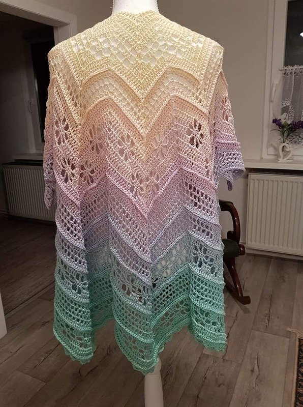 Nubes, the chic, modern crochet vest, which is also very suitable for large sizes, is lightweight and flattering around the body.