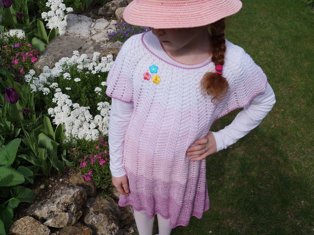 Da das Kleid komplett von oben nach unten in einem Stück gehäkelt wird, ist es auch ein perfektes Model um mit einem Bobbel zu häkeln.