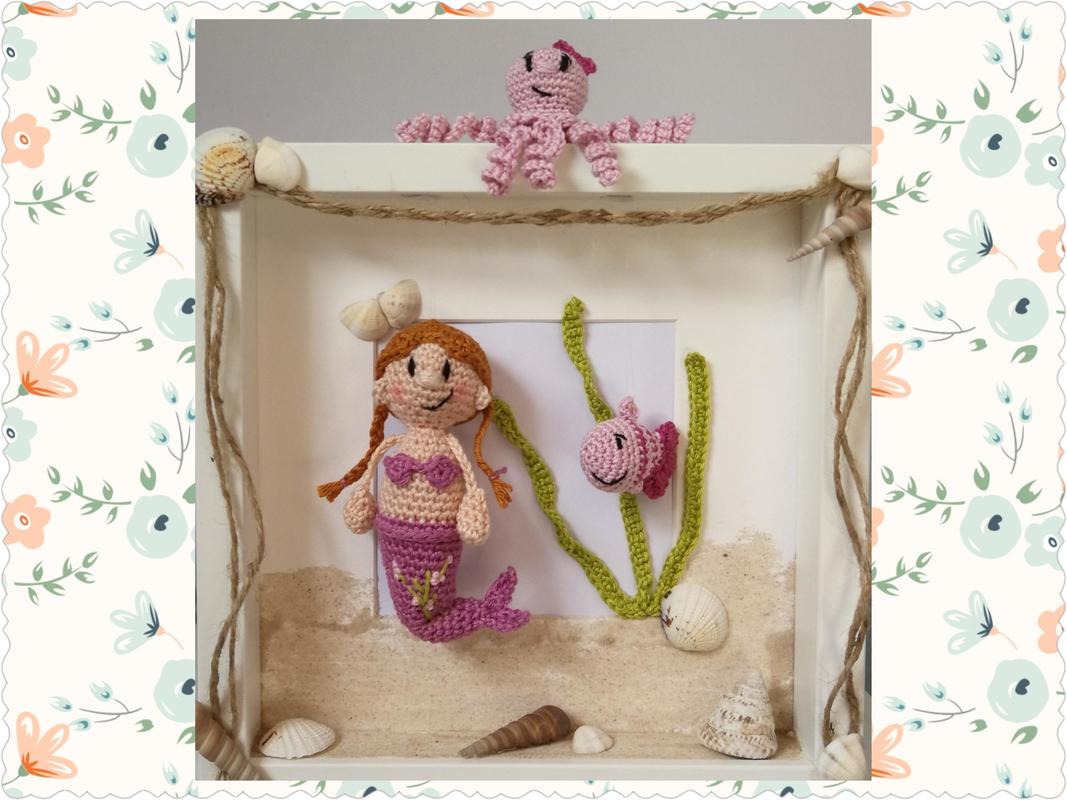 Suri wird mit Nadelstärke 2,5 und Baumwollgarn LL 125/ 50 g ca. 13 cm groß, Erwin wird mit Nadelstärke 2 und Baumwollgarn 125/50g ca. 5 cm lang und 3 cm hoch und Lotta wird 3,5 cm ( Körper) hoch und mit Tentakeln ca. 7,5 cm groß.