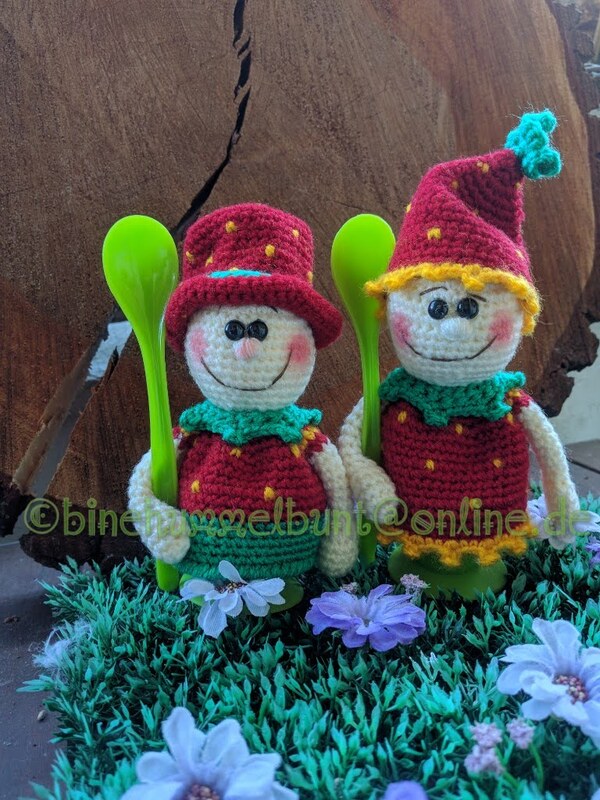 Warum ein Erdbeer Männchen allein am Frühstückstisch? Hier sind gleich zwei die dein Frühstücksei warm halten und dein Tisch ein Lustigen Ausdruck verleihen.