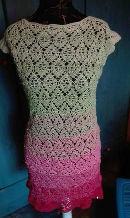 Ich habe für Konfektionsgröße 36 1000m eines Farbverlaufgarns benötigt. Damit ist meine Tunika recht lang geworden. Sie geht mir bis knapp über den Po. Bitte achtet darauf, dass Ihr die Lauflänge anpasst, wenn die Tunika bei euch länger oder kürzer werden soll.