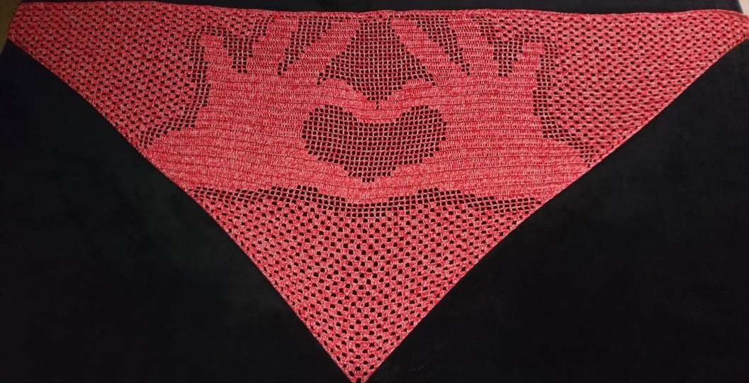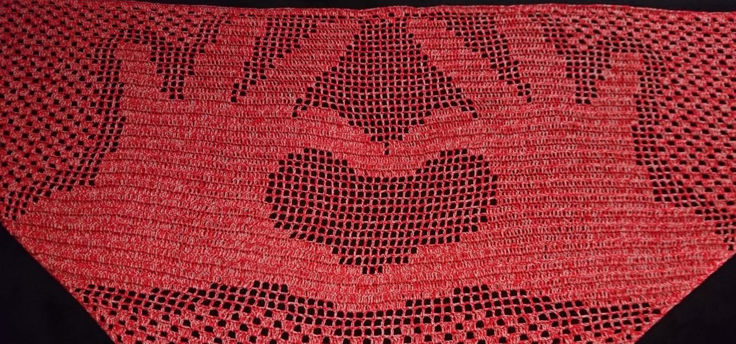 Die Anleitung ist auf 4 Seiten in teilweise Schrift (Erklärung Filethäkeln), der Anfang des Tuches in Pc-Häkelschrift und Zählraster geschrieben.