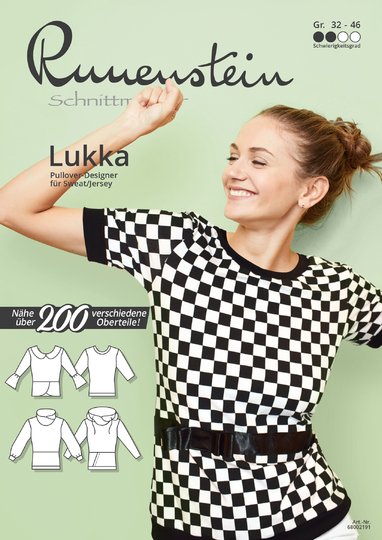 Ein Schnittmuster und über 200 verschiedene Oberteile. Wie das geht? Mit Lukka, dem Pullover-Designer für Sweat- und Jerseystoffe. In diesem Paket enthalten sind: Ein durchgehendes Oberteil, ein Oberteil mit Teilung, eine asymetrische Bauchtasche und ein Flügeloberteil. Neun Ärmelvarianten (oder ärmellos), acht verschiedene Halsabschlüsse plus Halsbündchen und einfachem Saum. Du bist der Designer! Erstelle dein perfektes Oberteil. Kombiniere immer wieder neu. Lukka wird nicht langweilig – versprochen! Ausführliche, bebilderte Anleitungen helfen dir beim Nähen.