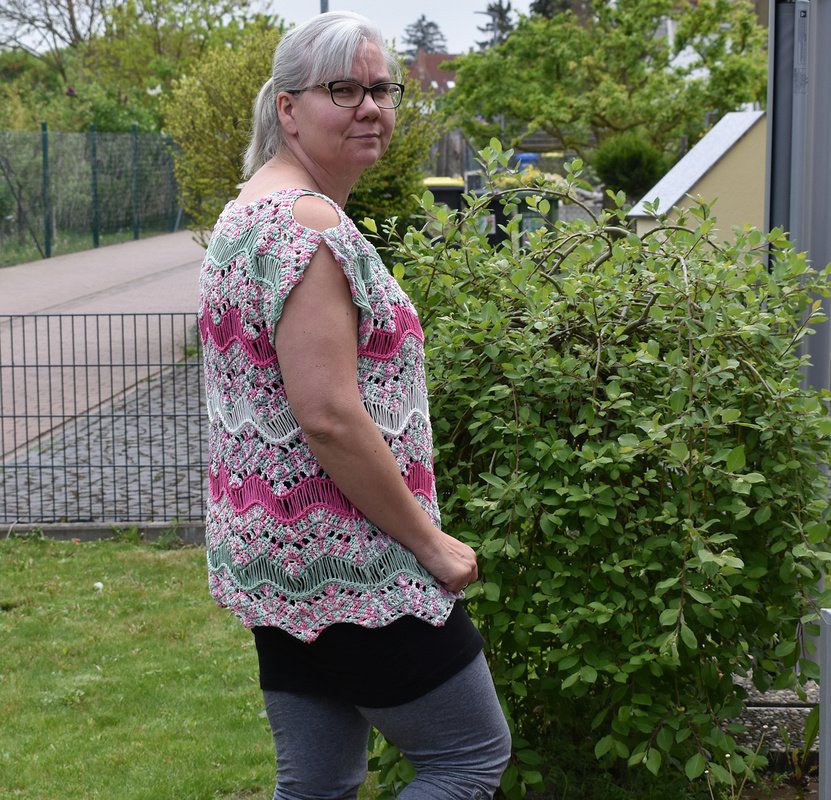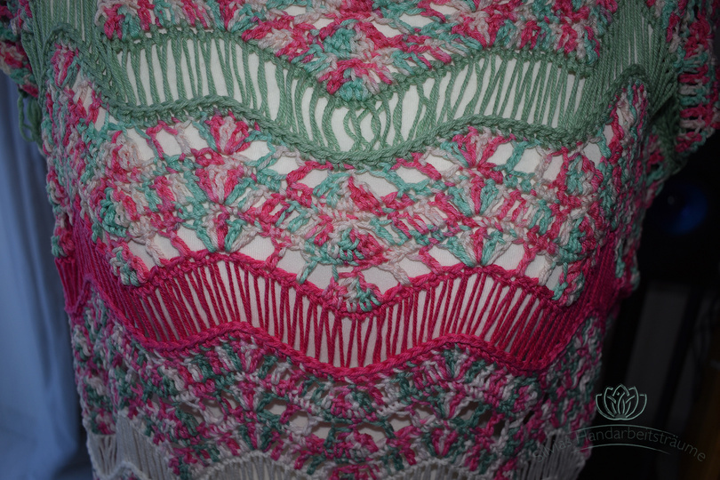 Ich habe dieses Shirt aus zwei Teilen gehäkelt.