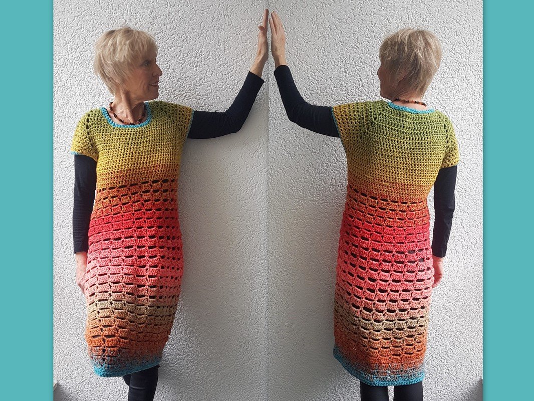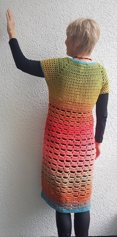 Dieses Kleid ist mal wieder ein Hingucker- einfach "Kleidsam"! Es hat einen runden Halsausschnitt und wird in Raglantechnik von oben nach unten gearbeitet. Die leichte Ballonform erhalten wir mit einer größeren Nadelstärke. Das Muster geht recht schnell von der Nadel und ist auch für Anfänger zu meistern. Die Anleitung beinhaltet