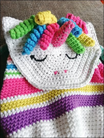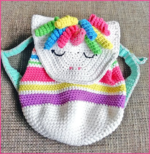 Häkelanleitung fü einen kleinen Einhornrucksack (ca. 23x30 cm)