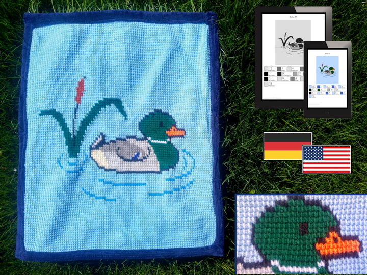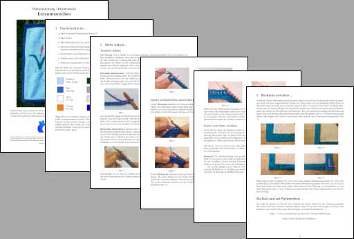 Die Anleitung enthält zusätzlich eine PDF Datei mit der genau abgezählten Maschenanzahl jeder Farbe pro Reihe. Diese Datei kann auf den eBook-Reader oder das Smartphone geladen werden um auch unterwegs bequem häkeln zu können. :)