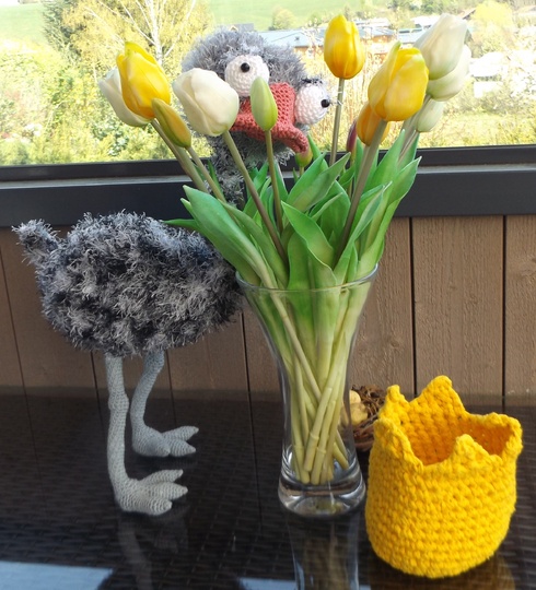 Von meinen gehäkelten Tieren hat keins eine Drahtschlaufe im Kopf oder anderweitig.