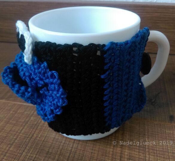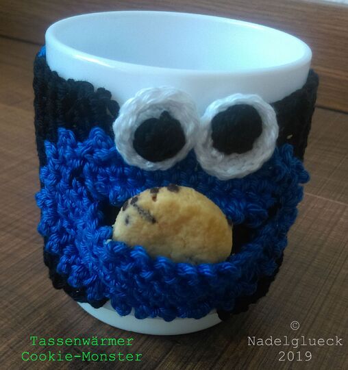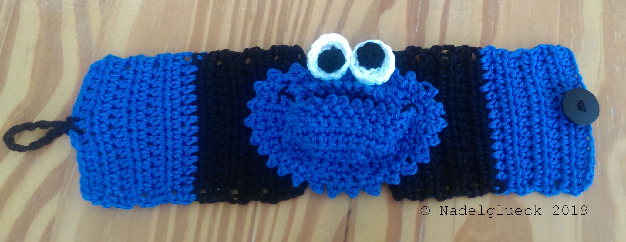 Tassenwärmer Cookie-Monster - Gehäkelt, mit Täschchen für Keks