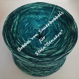 Garn: beliebig ... für meinen Prototyp habe ich einen Bobbel / Verlaufsgarn, ca.1100 mtr, 3-fädig mit Bouclebeilaufgarn genommen, und mit Nadelstärke: 5,0 gehäkelt …… allerdings kann es je nach Festigkeit oder Lockerheit der Häkelarbeit zu unterschiedlichen Garnverbräuchen kommen.