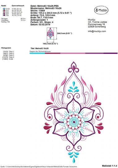 ★Stickdatei "Mehndi 3" ★ 16x26 ★