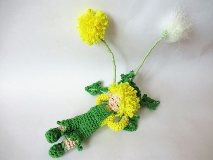 Das Püppchen wird etwa 12 cm, die Blumen ungefähr 17 cm.