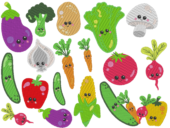mit Aubergine Radieschen Gurke Tomate Salat Möhre Mais Paprika Champignon Knoblauch ( geht auch als Zwiebel ) Kartoffel und Brokkoli