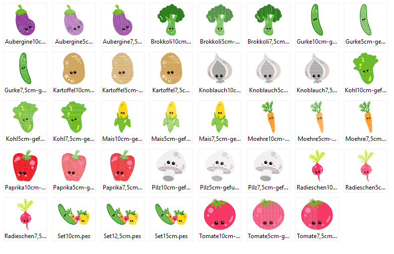 12 süße Motive in je 3 Größen für gefüllte Applikationen