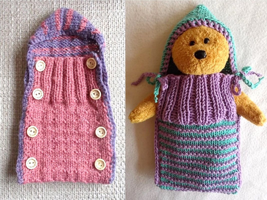 Beide Schlafsäcke sind ganz einfach zu stricken, sofern du schon mal gestrickt hast. Es wird alles gut beschrieben. Einfache Grundkenntnisse im Häkeln solltest du auch mitbringen. Denn der Rand wird bei beiden Modellen umhäkelt.
