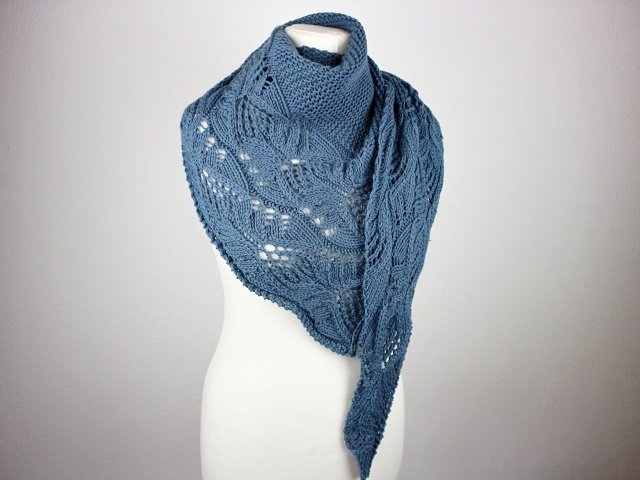 Das Tuch „Japanese Flowers“ beginnt mit nur wenigen Maschen und wird durch seitliche Zunahmen immer größer. Zuerst wird nach Strickschrift A, dann B und anschließend C gearbeitet. Falls ein größeres Tuch gewünscht ist, kann Strickschrift C beliebig oft wiederholt werden.