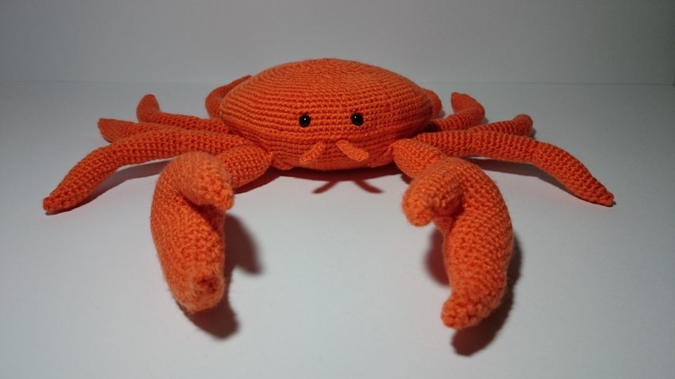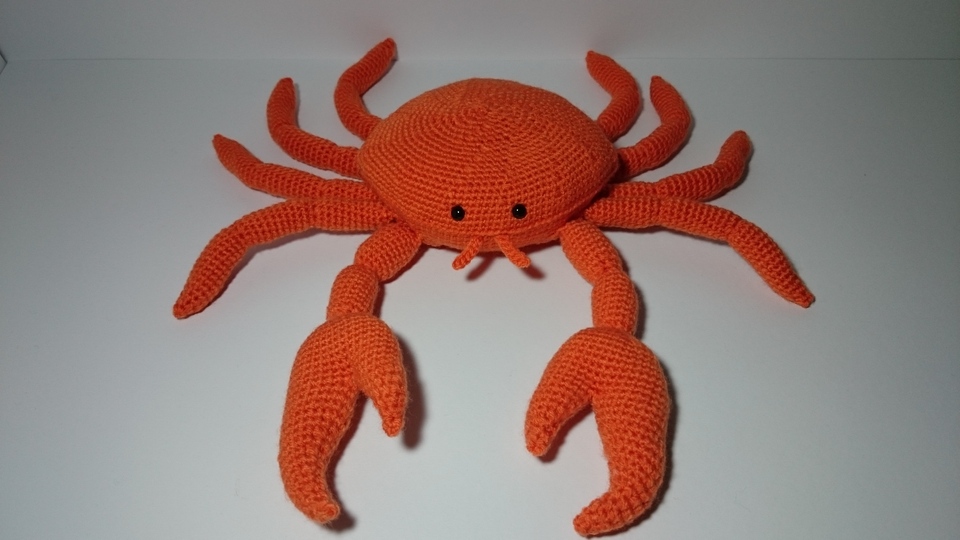 Wenn Du diese Wolle verwendest, wird der Krebs ca. 33 cm breit und ca. 35 cm lang.