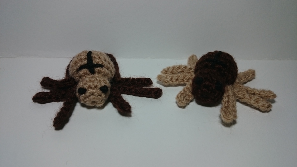 Je 1 Knäuel Weiß, Dunkelbraun, Hellbraun, Kürbis, Grün, Gelb, etwas Schwarz und 2 Knäuel Hellgrün