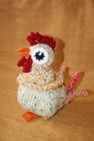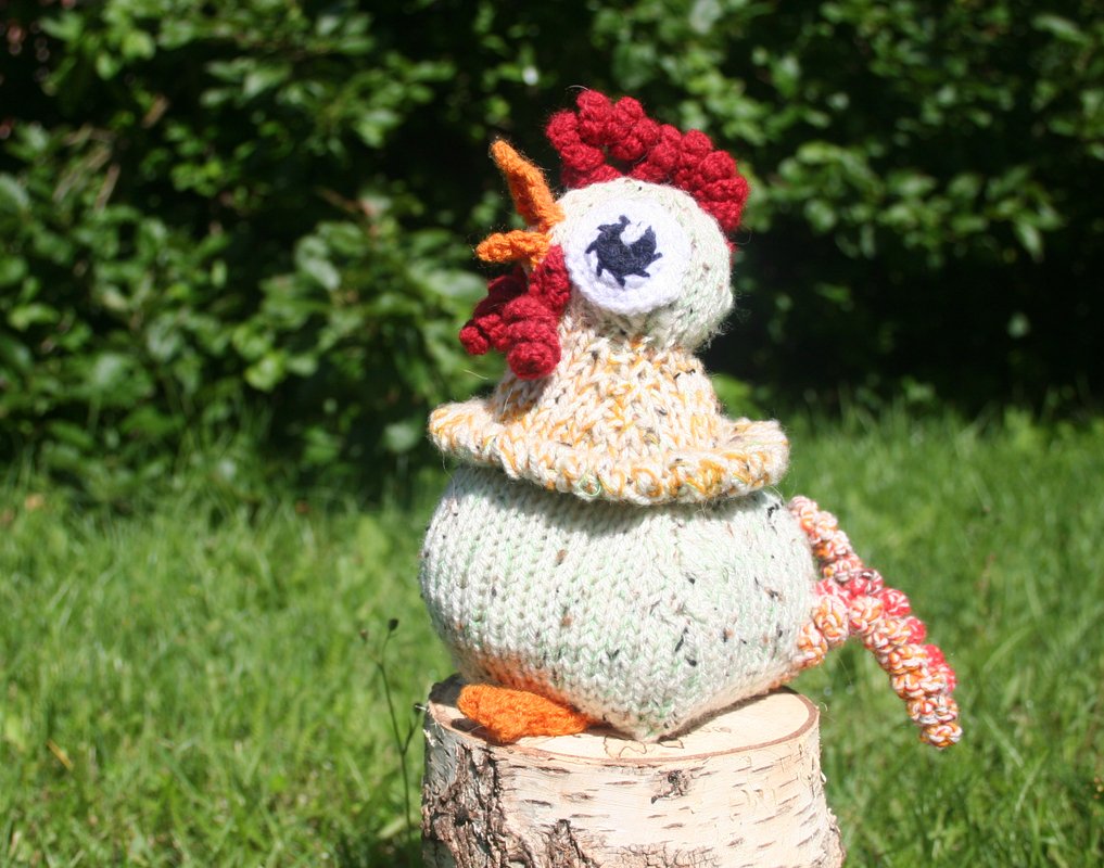 Rechte und linke Maschen stricken, Luftmaschen und feste Maschen häkeln - das ist alles was Sie können müssen, um diesen dekorativen Hahn anzufertigen.