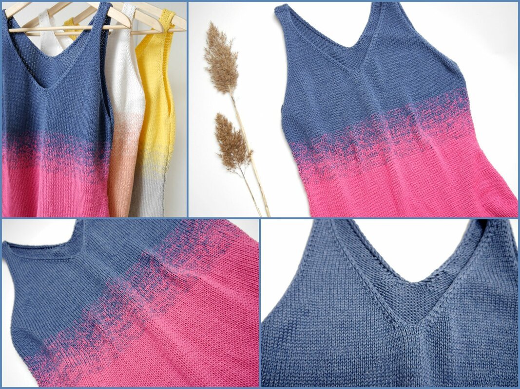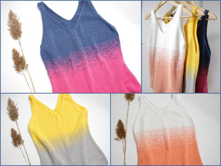 Das Besondere an diesem Top ist der sanfte Farbverlauf von einer Farbe zur nächsten, welche Du ganz nach Deinen Wünschen zusammenstellen kannst. Alle Farbkombinationen möglich...